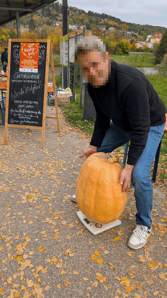 Auch die letztjährige Siegerin Ina-Marie Friedl aus Ihrlerstein trat wieder an – diesmal gemeinsam mit ihrem Cousin Janosch Fischer. Ihr „Atlantic Giant“ brachte beeindruckende 33,1 Kilogramm auf die Waage und wurde im Garten ihrer Oma in Kelheim liebevoll gepflegt. Beide freuten sich sichtlich über den Erfolg.